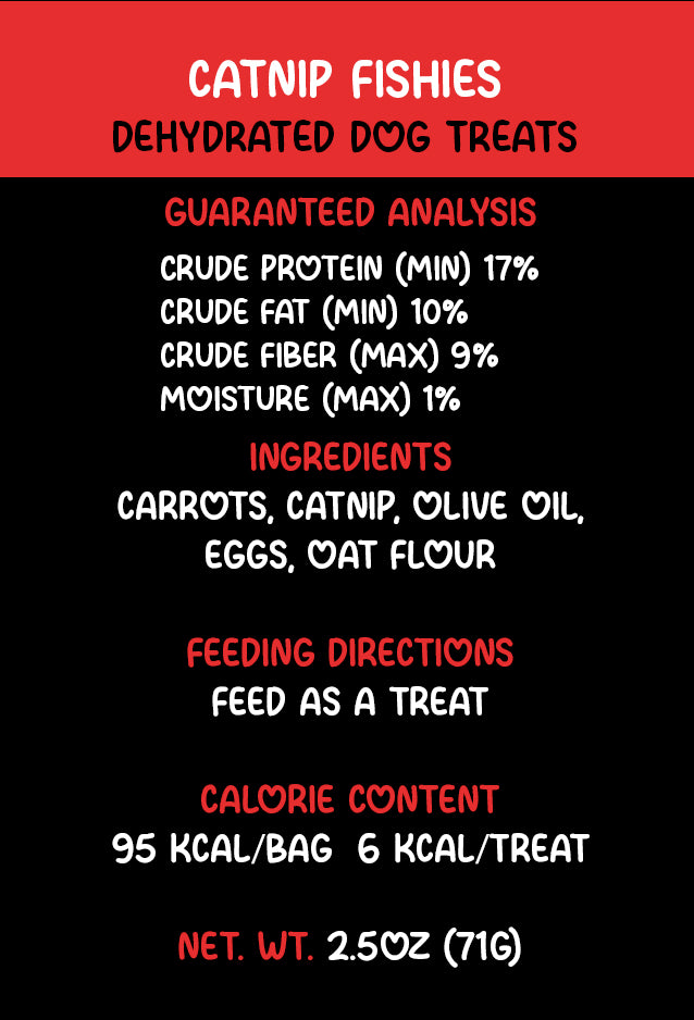 Catnip fishies Treats Carrots, catnip, olive oil, eggs, oat flour